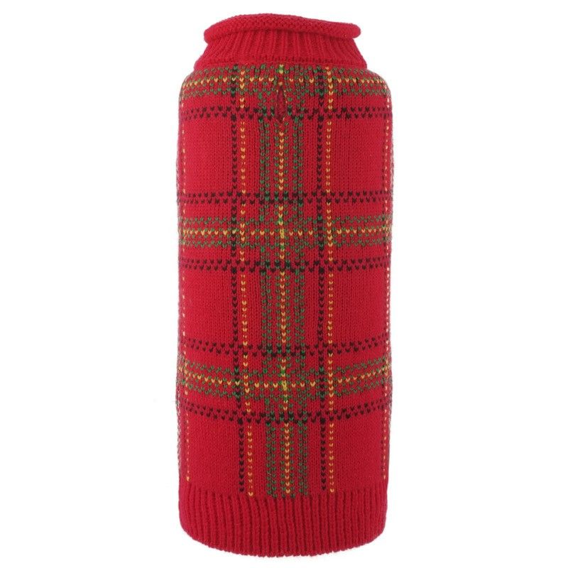 The Tartan roll neck by Worthy Dog is a stylish and warm sweater. 100% acrylic, this super-comfy double-knit sweater will make your dog look adorable. The sweater features a “button hole” in the back so that you can conveniently hook your pet’s lead to his/her harness.