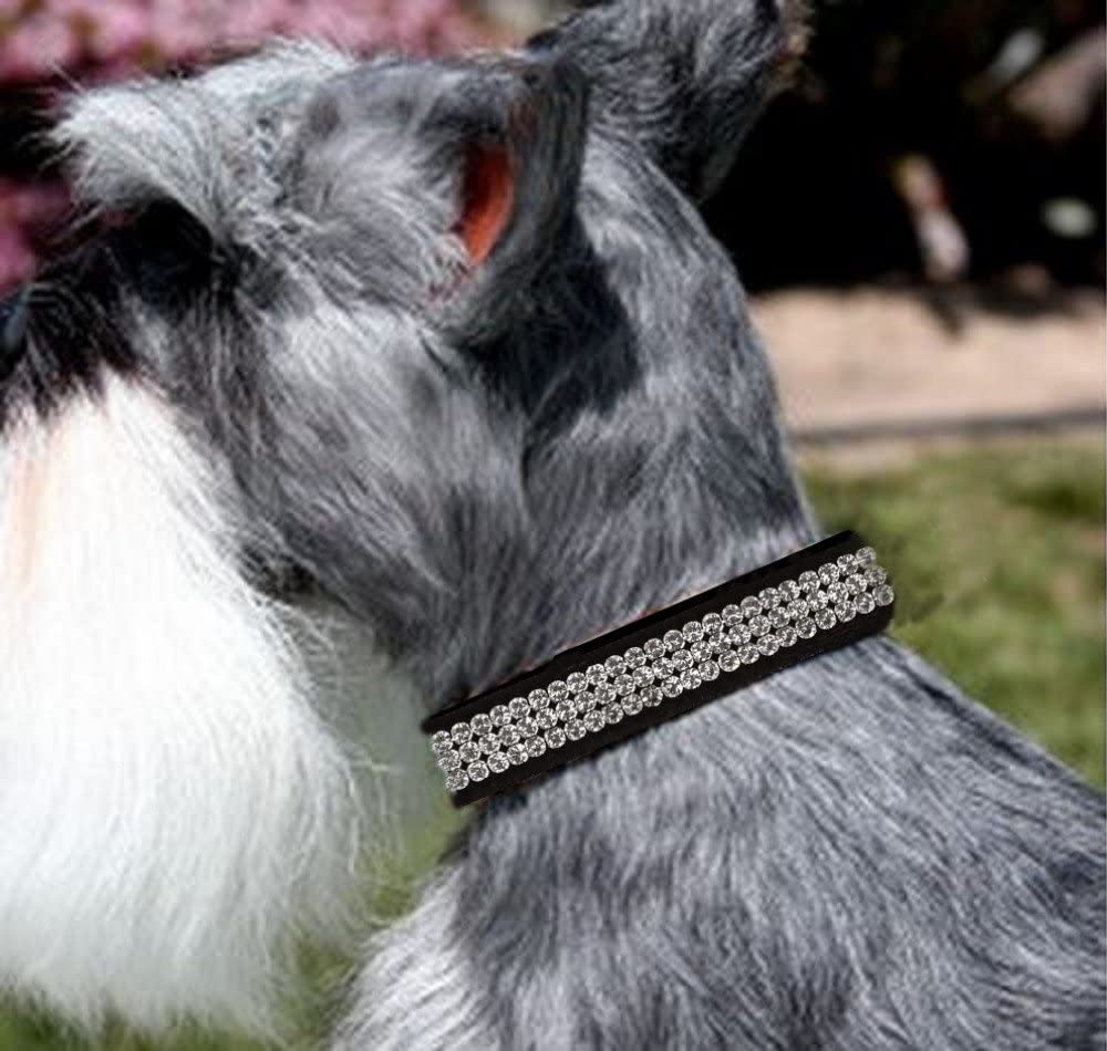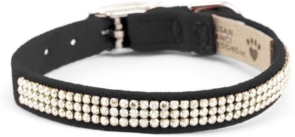 Susan Lanci Black Giltmore 3-Row Swarovski Crystal Ultrasuede 1/2" Dog Collar Size XSmall